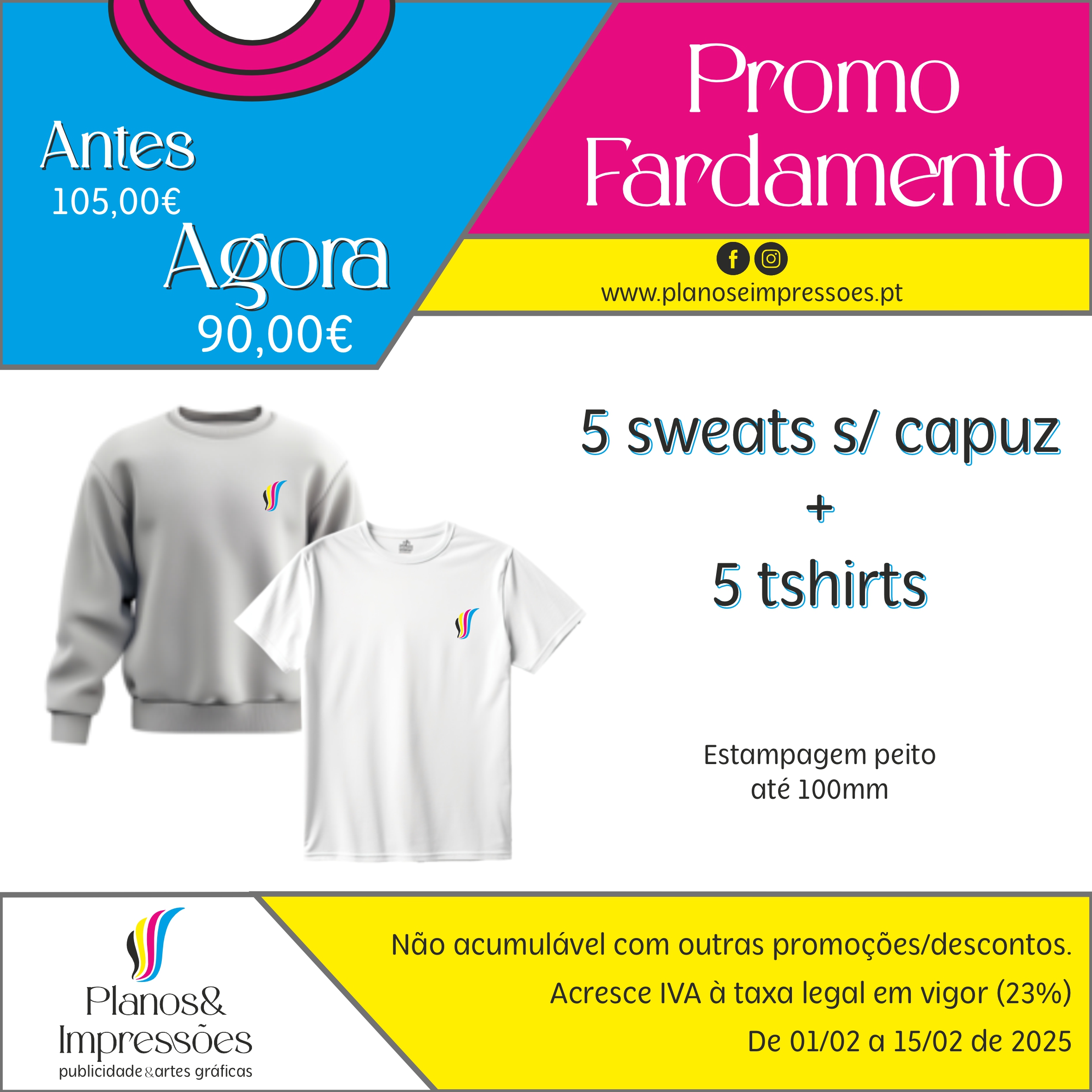 Composto por 5 sweatshirts sem capuz + 5 t-shirts