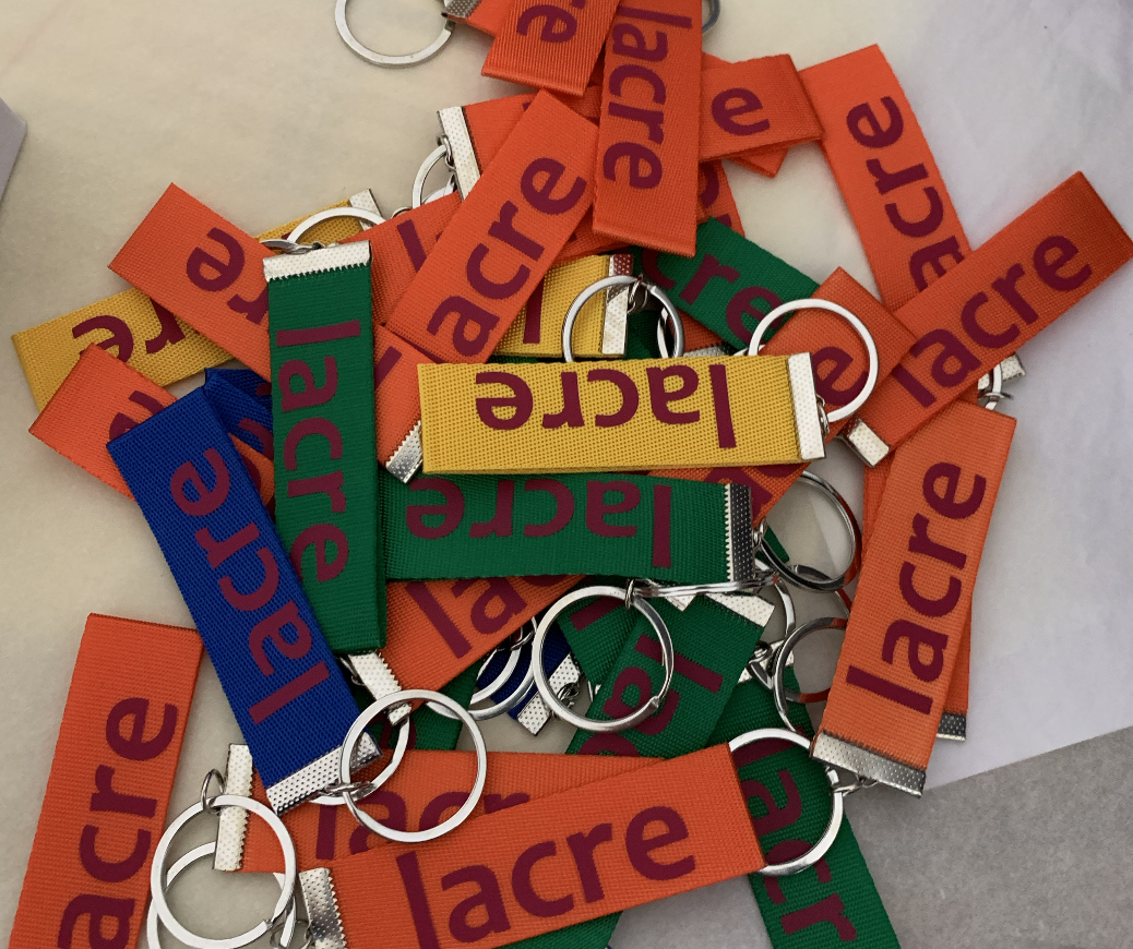 Porta-chaves em poliéster resistente com acessórios em metal.