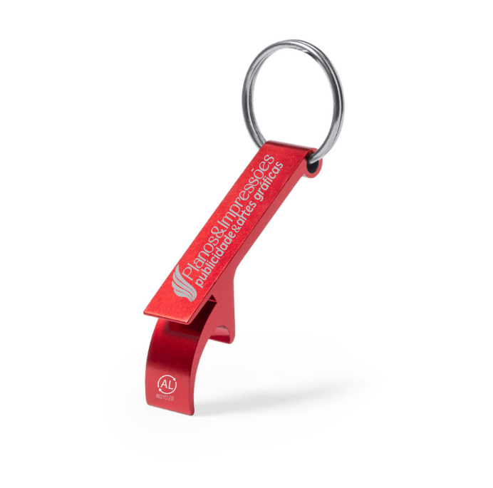 Porta-chaves abridor em alumínio reciclado. Com acessório para abertura de latas.